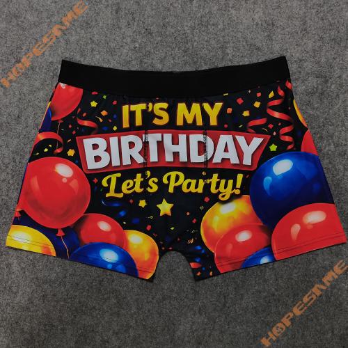 • Product description:Balloon and Streamer Pattern Design with Festive Greeting Prints, Men's Bottomless Style
