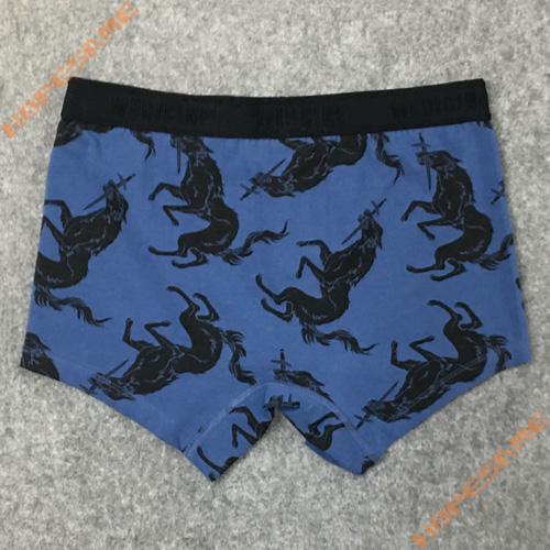 • Product description:Men's Blue Cotton-spandex Printed Underwear with a Horse Print Design