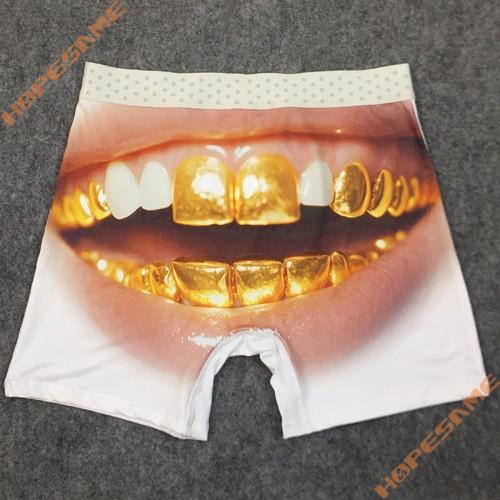 Home      Products     Underwear     Men Boxer       White Men's Underwear with Gold Teeth an