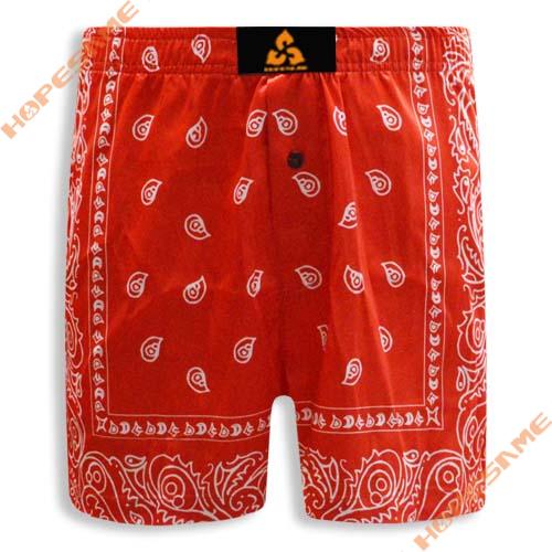 • Product description:Men's Boxer Shorts, Red Patterned Repeated Print Design Made of Spandex/Polyester Fabric, Breathable and Quick-drying, Anti-static, with a Woven Label.